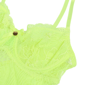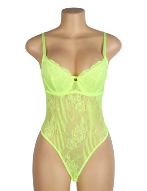 Sexy Lace Push Up Open Crotch Bodysuit green