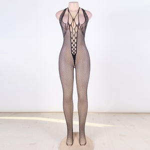Turn up the heat with this sultry halter bodystocking that leaves little to imagination. The daring open back and delicate netted fabric create an irresistible silhouette, while the halter neckline frames your shoulders with undeniable allure. Whether you're planning a night of seduction or simply want to feel absolutely stunning, this piece delivers confidence and edge in equal measure. Dare to bare and captivate.
