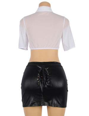 Unleash your inner confidence with this sleek black leather skirt that's equal parts sophisticated and flirty. Crafted for those who love making a statement, this piece delivers that perfect blend of edgy allure and polished style. Whether you're channeling a bold aesthetic or looking for a versatile wardrobe essential, this skirt transforms any outfit into something unforgettable. Slip it on and feel the look.
